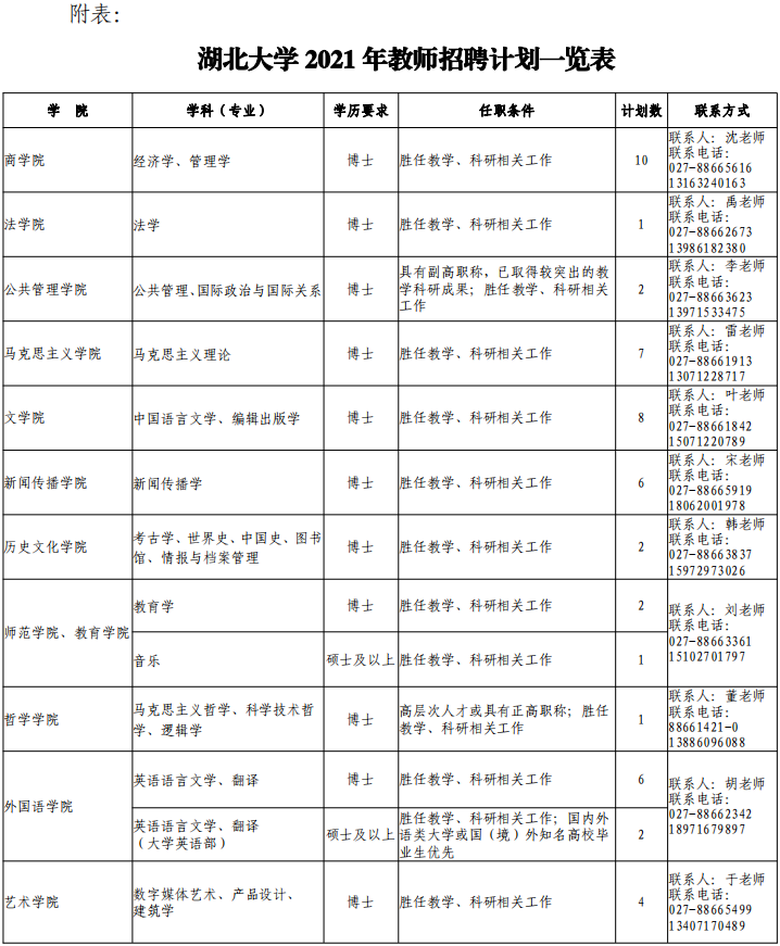 (二)招聘计划(见附表)