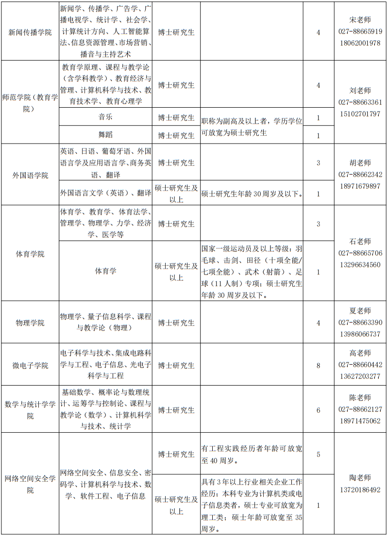 高层次人才引进不受招聘计划限制,具体情况如下。